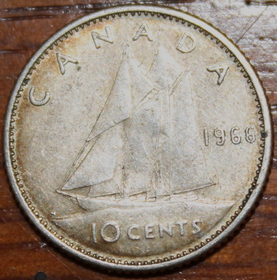 The nickel has about $1.50 worth of silver in it. The Canadian 10 cent coin is 80% silver. All in all you did very well on your 26 cents spent:D