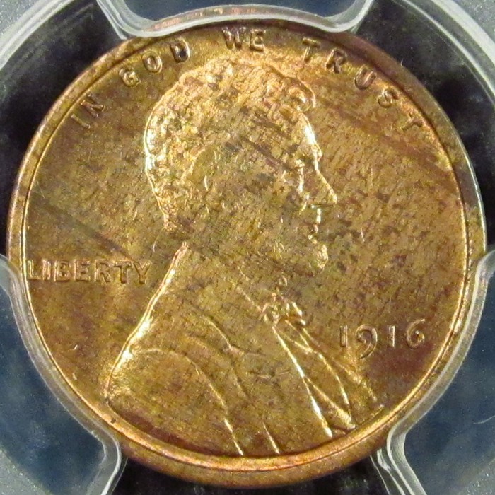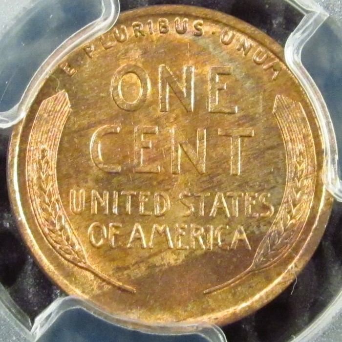 Here's one I picked up at the 2016 Fall PNNA coin show this weekend. The vibrant colors you see is an iridescent patina that has developed over the surface of the Lincoln Cent. The reverse has folded lamination right above the N in CENT. When I was first looking at the coin, I thought it was a hit. When I got home I discovered what it really was.