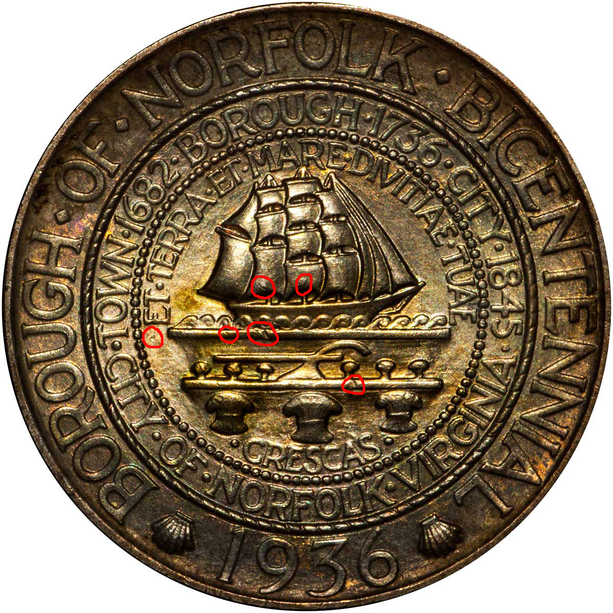 Interesting. I did not notice those marks before, although I still am not sure whether or not they would change the grade drastically. I don't really see anything on your blast white coin that keeps it down at a 66 (not that that's a low grade or anything). Both are really great coins. Now, your "mostly toned almost complete set": Is that a commemorative half dollar set?