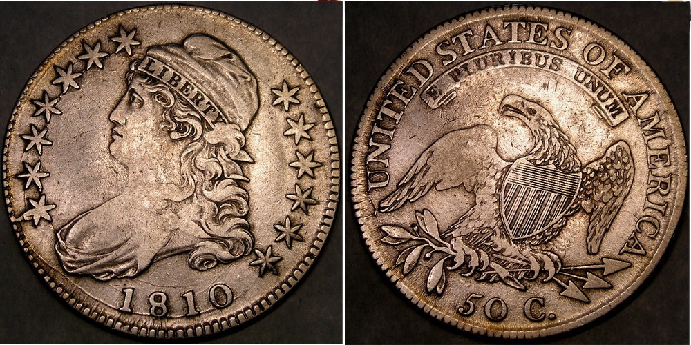 I hope this isn't considered bad form....can I throw in another capped Bust and ask for a grading assessment? Trying to practice my grading on this. My guess would be that the obverse looks like VF(?35?) and the Reverse looks like F12-VF25 - I was using the photo grading site http://coinauctionshelp.com/cappedbust_halfdollar_grading.html to try and assist my judgement on this. I thought the strong wear on the feathers on the reverse was the real detractor for the reverse, but I am just starting to learn. I welcome all feedback.