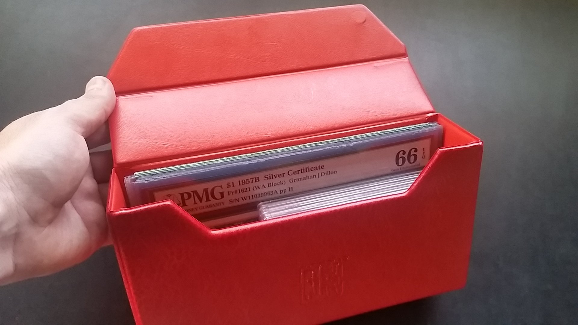 Received this yesterday. A case that holds graded notes. Thanks to @Bucephalus for recommending it. It was every bit as good as he said and also better than I expected. It was purchased on eBay from a seller in China so I wasn't too sure what to expect, despite Bucephalus's review. I purchased the one for small size graded notes. The seller also has one for large size notes. EDIT: Those are PSA slabs I also put in inside the case.