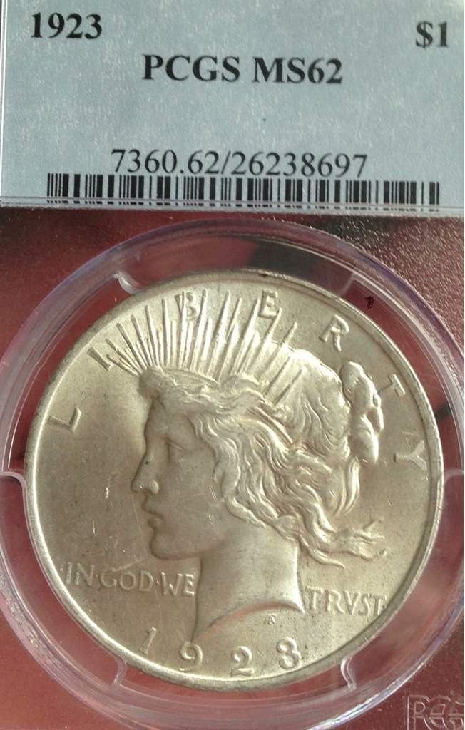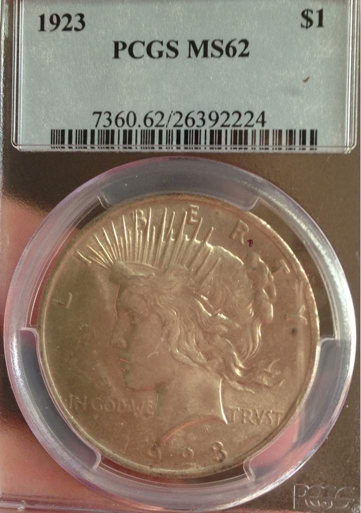 Here's the reverse of that first Peace Dollar PCGS 1923-P Peace Dollar MS-62 this one is also $40 RAW 1889-O Morgan. Looks XF-AU $35 More on next page.