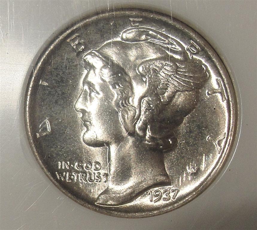 First Dime MS67 Second Dime MS68 FB (compared to others in this contest, both are better, so would expect to be 68....the second one is a beautiful coin...both slabs are well scratched) Morgan MS65 (Reverse would be a 66, but too much chatter on the obverse..better than some given location of marks)
