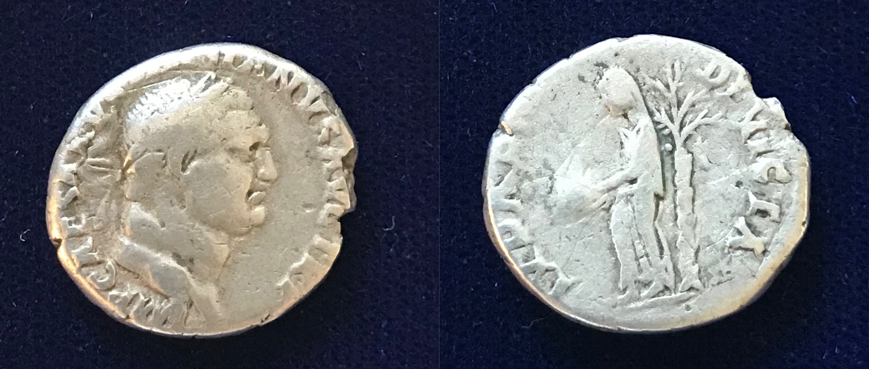 A most wonderful 'grail' indeed! I would certainly say a de rigueur acquisition for anyone collecting Flavians. Mine is solid silver as well. Vespasian AR Denarius, 3.10g Lyon mint, 71 AD Obv: IMP CAESAR VESPASIANVS AVG TR P; Head of Vespasian, laureate, r. Rev: IVDAEA DEVICTA; Palm tree; to l., Judaea stg. l., hands bound in front RIC 1120 (C). BMC 388. RSC 243. BNC 297. Hendin 1488. Acquired from eBay, March 2012. A Judaea Capta type unique to the mint of Lyon. Minted in 71 AD, more specimens of this type are seen plated than not. This coin is an example of the solid variant. The evidence that this type was well know as a fourrée in ancient times can be seen from the test marks behind the neck and below the chin of the portrait. I'm not entirely convinced the plated coins are the work of forgers. Could the plated examples be the work of unscrupulous mint workers?