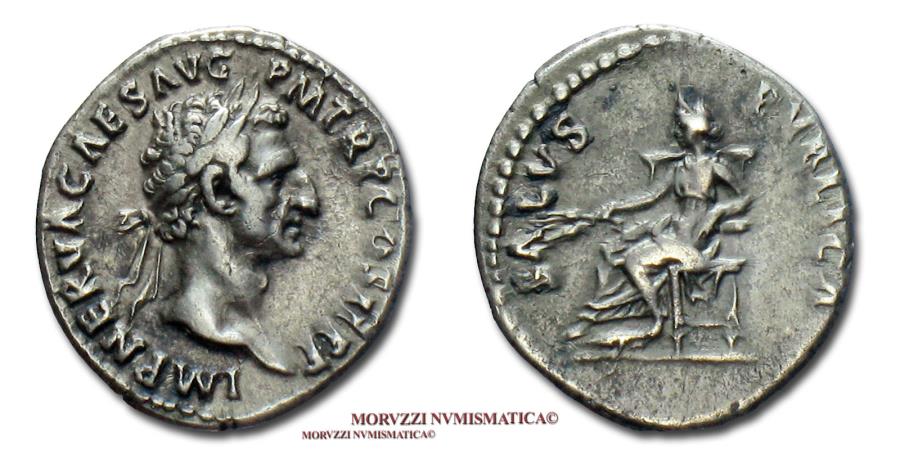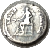 From the beginning of his reign - not a big nose here - he looks more like Augustus Denarius, Rome 96 AD 17 x 18 mm, 3.134 g RIC II Nerva 9; Cohen 132/Fr.2; Ob.: IMP NERVA CAES AVG P M TR P COS II P P Head of Nerva, laureate, right Rev.: SALVS PVBLICA, Salus, draped, seated left on throne, holding two corn-ears downwards in extended right hand, left arm resting on arm of throne