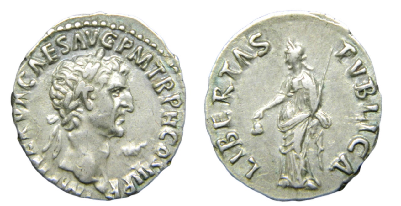 the best Nerva's nose I have: Nerva AE Dupondius. 97 AD. RIC 87 IMP NERVA CAES AVG P M TR P COS III P P, radiate head right / LIBERTAS PVBLICA S-C, Liberty standing left, holding pileus and sceptre.