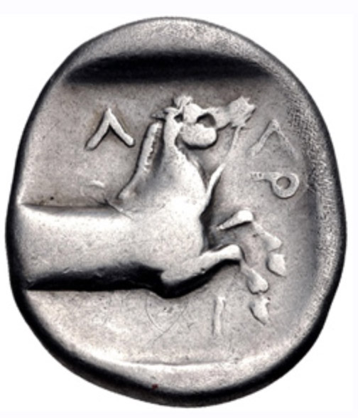 Nice coins all. The animals on my coin are full bodied: THESSALY, Larissa AR Drachm. 440-400 B.C. 5.94 grams, 20 mm Obv: Naked youth with short cloak billowing out behind him wrestling unruly bull prancing to left. Rev: Bridled horse galloping right with ΛAPI above and ΣAIA below all within incuse square Grade: A good VF coin including nice cabinet tone. Centered strike with minor scratches below horse. Other: SNG Copenhagen 108; similar to Sear 2111 pg 203. Seller and Wildwinds state 440-400 B.C. Sear states 400-360. From Allen Berman March 2017.
