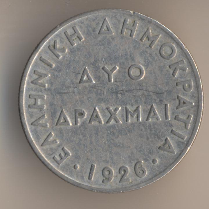 2 drachmai 1926, copper-nickel.