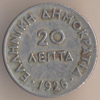 20 lepta 1926, copper-nickel, weight - 1,8 g., size - 16 mm, mintage - 20000000 pcs. The single release only.