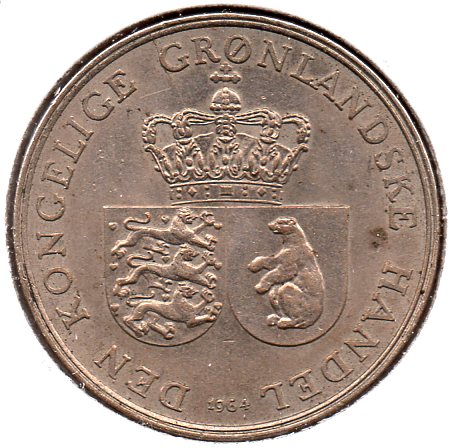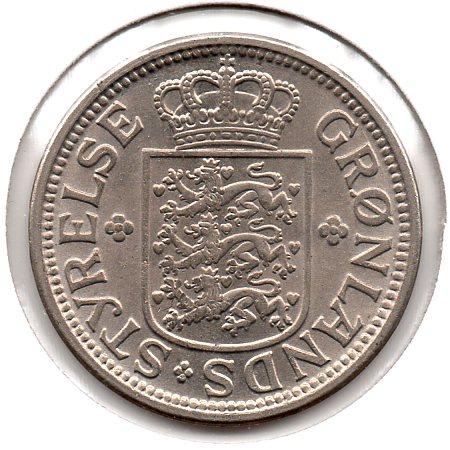 This is not a Greenland issue, but a Danish issue with a depiction of Greenland on the reverse. Denmark - 2 Kroner - 1953 NS - KM #844 - 15.0000g, 0.8000ag, 0.3858oz - 31mm