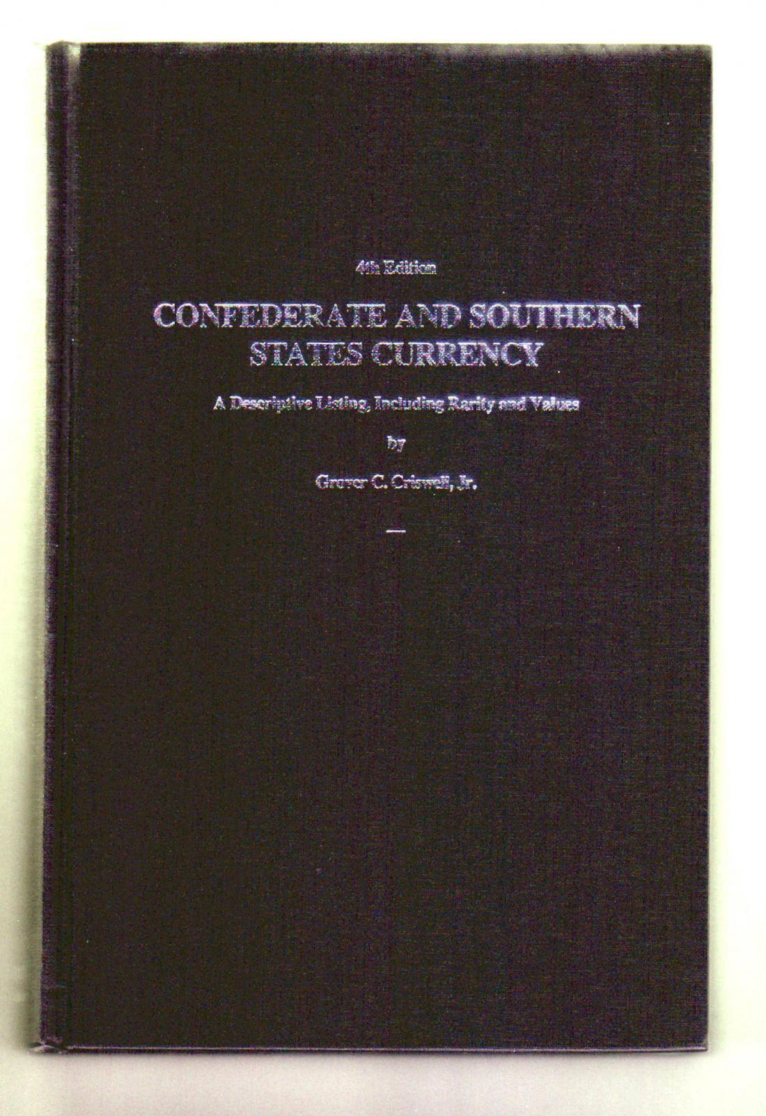 This is a presentation copy of Criswell's hardbound book, "Confederate and Southern States Currency - A Descriptive Listing, Including Rarity and Values," 4th edition, SIGNED and dedicated to ME, December 16, 1992: "...To D--- S------, to a long time friend and lover of the historical arts, etc., Warmest Regards, Grover Criswell." I knew him over 30 years, and attended the IRS auction of his seized property in Jacksonville, Florida, a spectacle which broke his heart. At that auction, he begged me to bid on a frame of US duck stamps signed both by him and by his father; I did, and won them after a struggle, and later gave them back to him, one of the few keepsakes he was able to retrieve. I have no opinion on whether the IRS seizure was appropriate, or whether the resulting auction was handled correctly. But it broke him, emotionally, completely. Grover was also President of the ANA, 1977 to 1979. He died in 1999. The book/catalog is in Mint Condition. I bought the 5th edition when it came out, so this signed 4th edition wouldn't get damaged or worn. Total 415 pages, lavishly illustrated with B&W images. Price, $75 postpaid and insured. Yes, the prices are 25 years out of date, and you can buy a used copy for about half this price. But it won't be this special copy. For this item, money order only. Shipped ONLY to the United States.