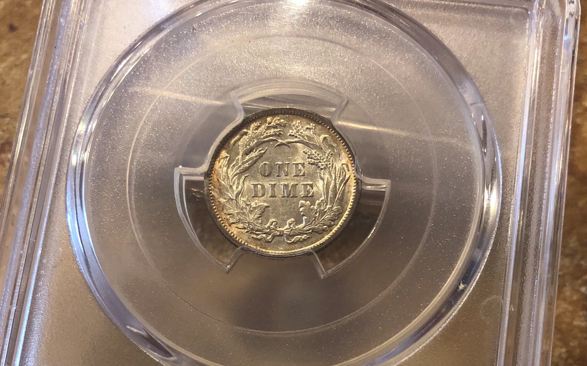 I think it would come back 58 again; I don’t personally think it is chewed up looking enough for 60 so if anything it might come back at 62 if I dipped it briefly (the skin is thick and I see a lot of hidden luster beneath it in-hand) but I like it right where it is. The coin circulated briefly, should be AU58.
