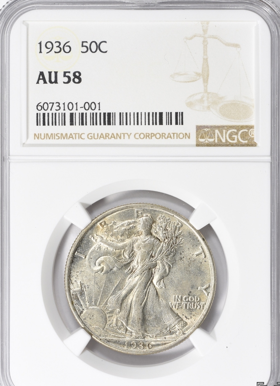 Be mindful, I am still learning to grade this series...in fact I feel borderline amateur-ish. Thought process: Is it MS? I don't think so. Even though there is luster present, I feel there is wear on Liberty's thigh leading up to the hand, to the flag just right of the I and on the olive branch. Reverse shows it on the breast and left leg. I don't think it is XF, well, because there is luster present. As for AU I am throwing hands up in total guess and will say AU 55. Again though, I am still working on training my eye on this series.