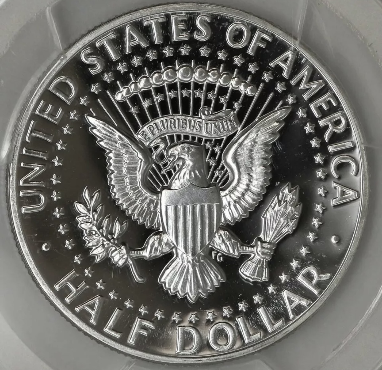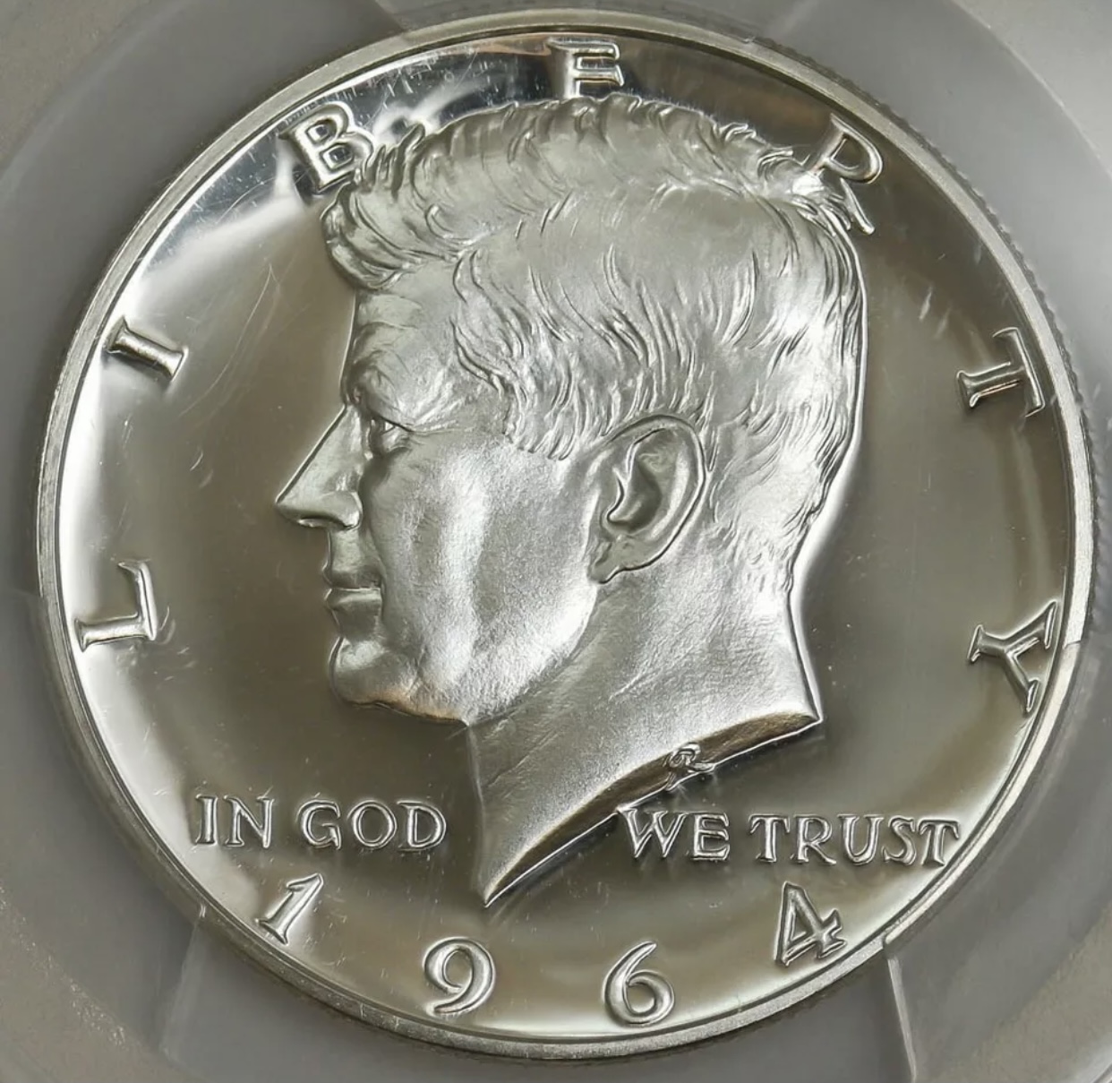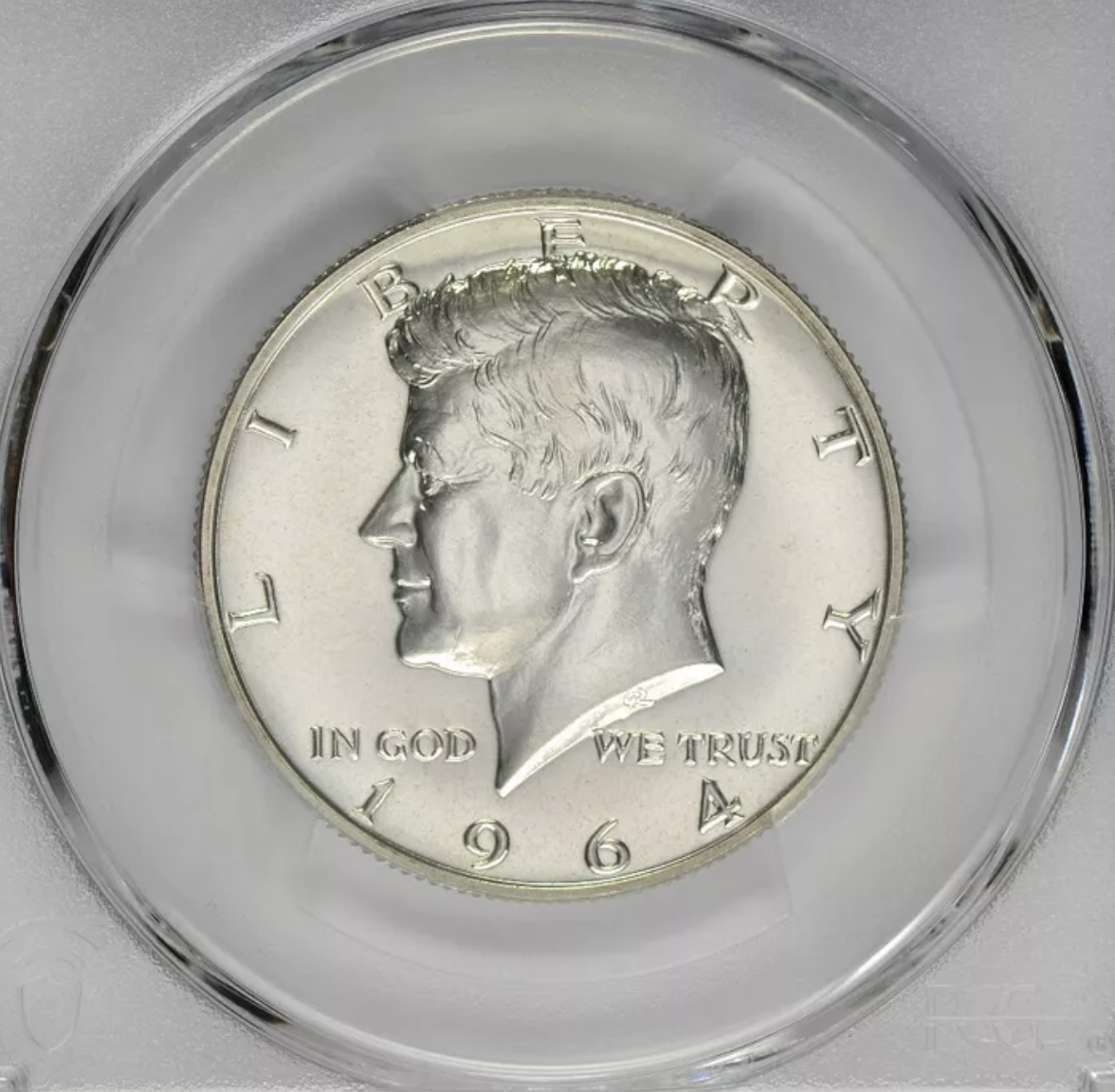TPG’s especially PCGS are tough on modern coinage. Even harder on modern horded coins such as the ‘64 Kennedy and the ‘76 Bicentennial half. Everybody saved them. The slightest imperfection knocks the grade down. The picture shows something behind Mr Kennedy’s head at 3 o’clock. Only with the coin in hand and with magnification can the little nick pitdy specks be seen. Count each little thing and subtract the total from 70 and you will have your grade.