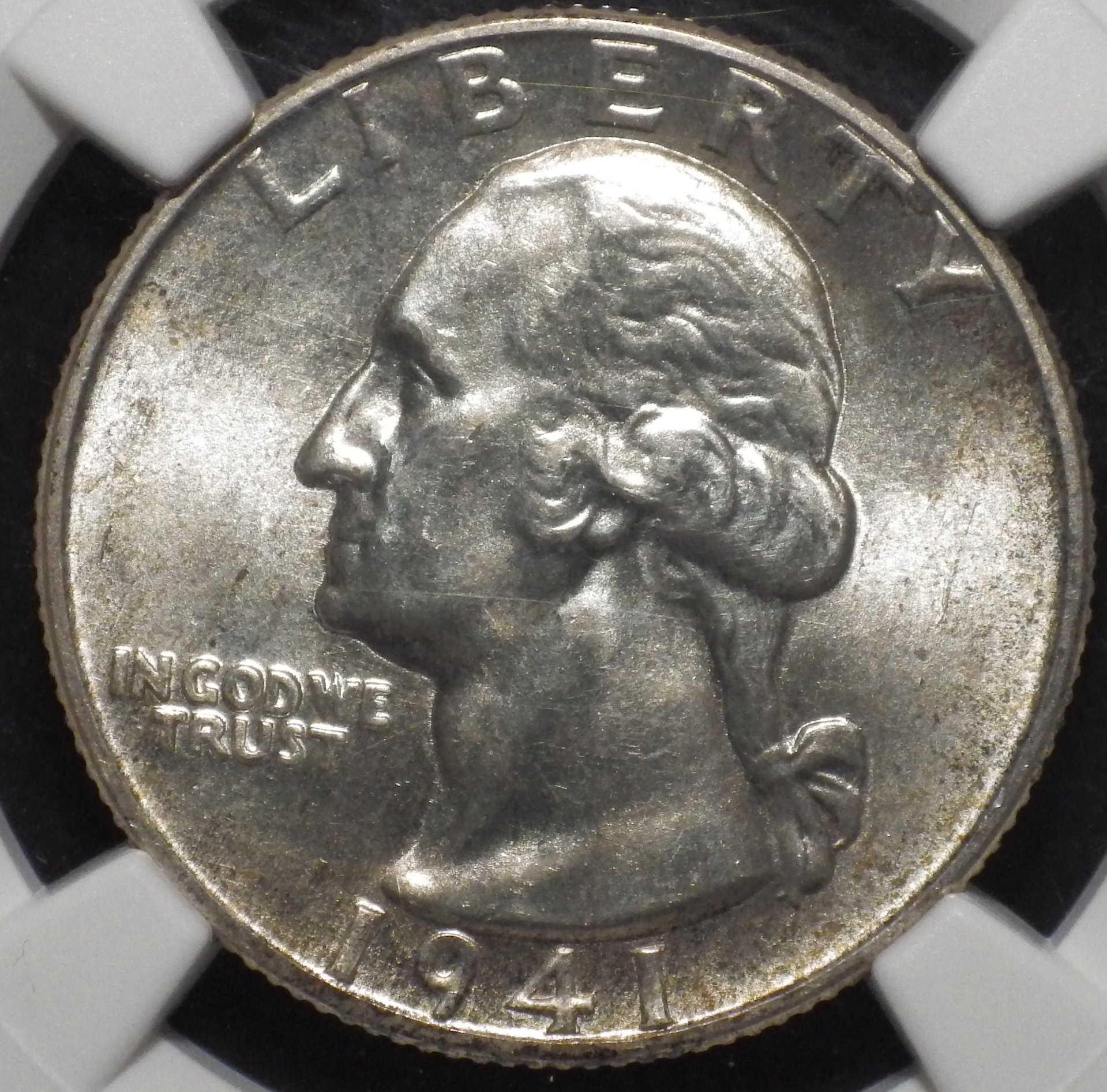Here are two 1941 D Washington quarters, both NGC both in MS grades. No filters on the shots, just the camera with a flash. Coin 1. Coin 2.