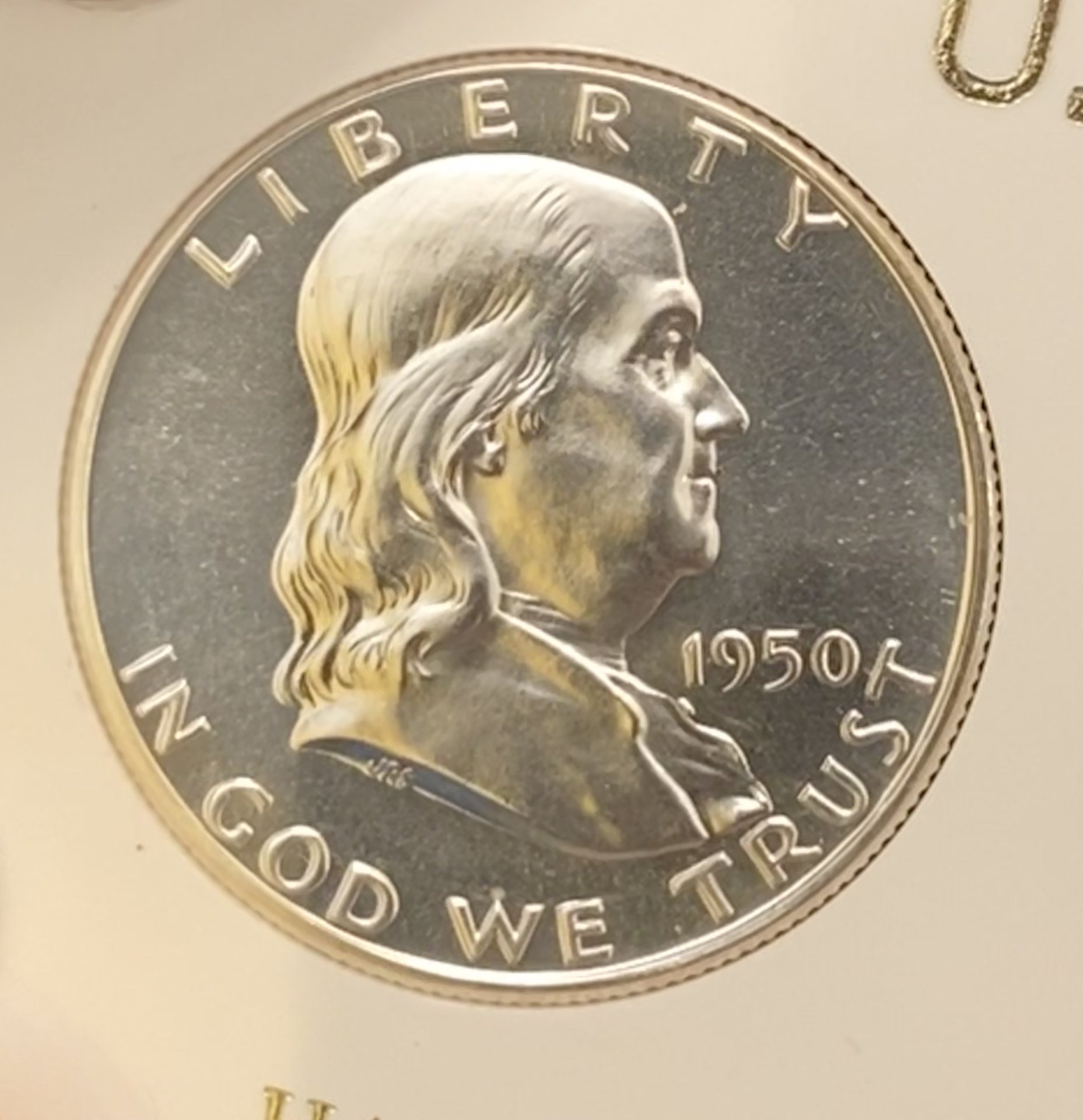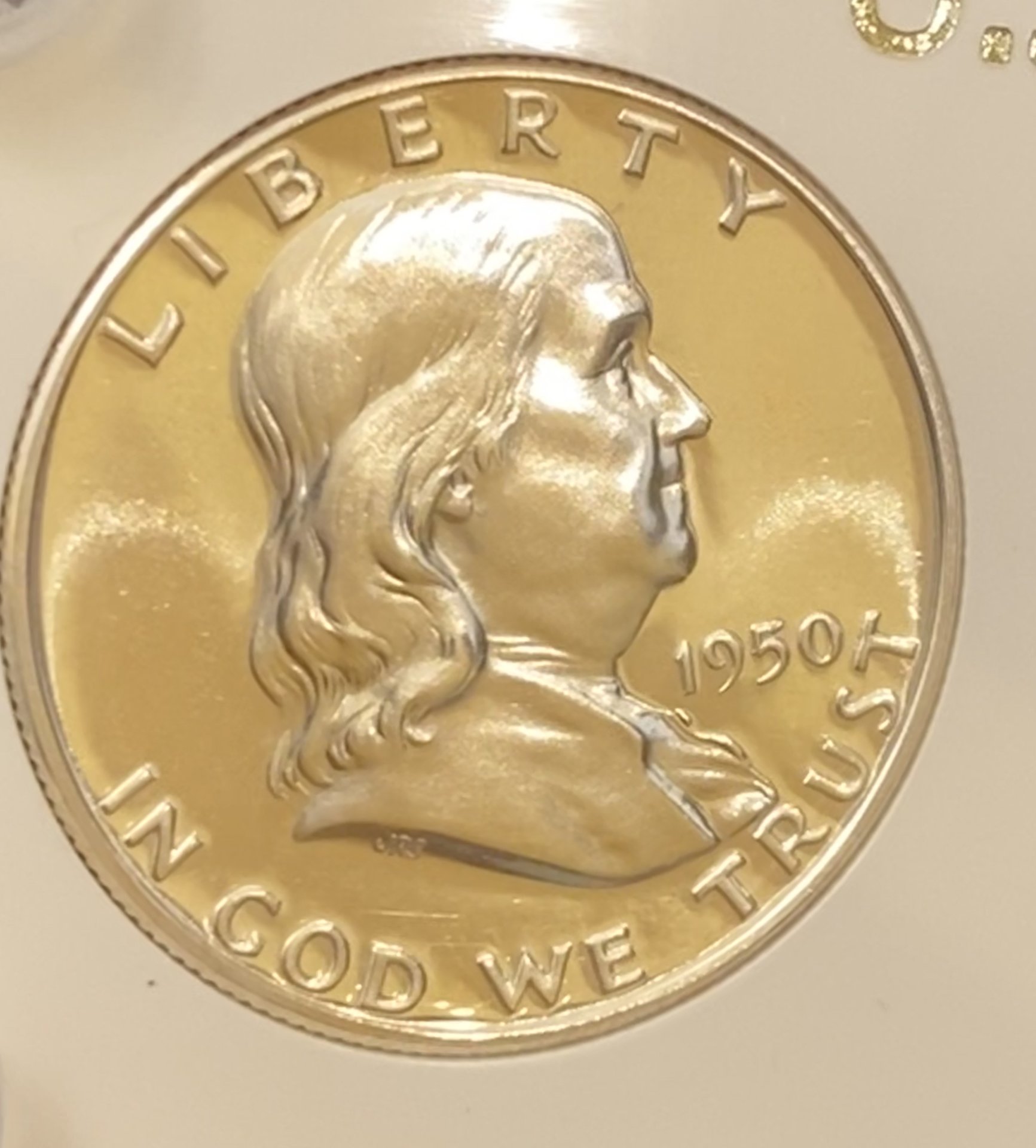 Well, this thread is wondering all over the place so I will post my 1950 in here. It was a PCGS PF63 that now lives in a capital plastic holder. I tried to take pics from many different angles. @Morgandude11 does it have the same grainy fields? I think I might see what you are referring to in the last obverse pic.