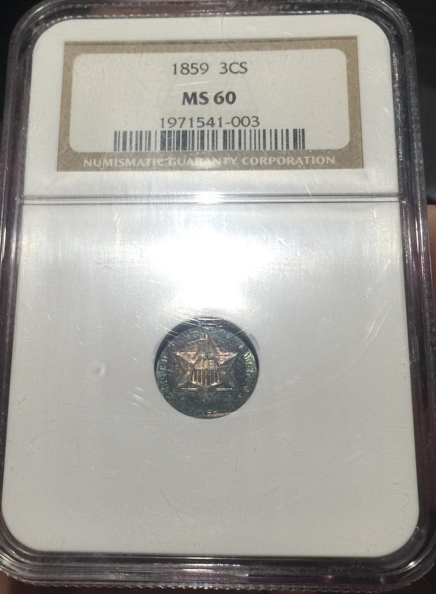These little things are tough to grade. I'll guess it lost a point because it's so dark. It's also tough to image dark coins. Tiny marks don't show in images. I think it's a nice coin.