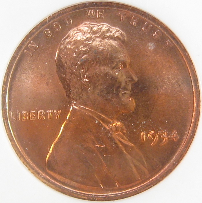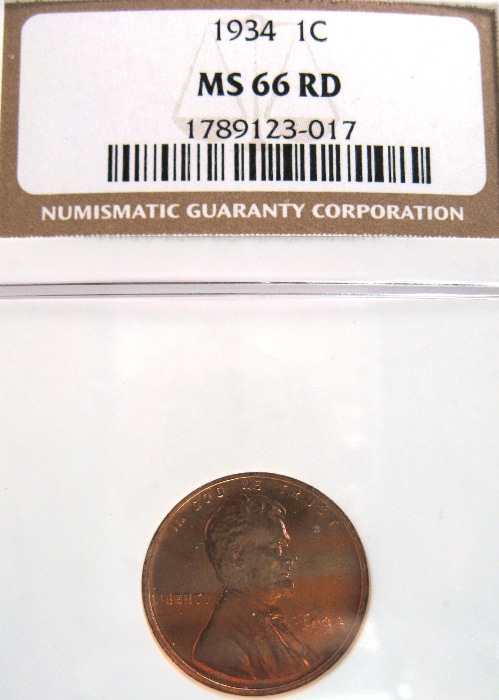 This is probably the only red woody I have seen certified. I wish I knew if the stripes were there when it was certified. They are faint, but if you look closely, you be able to see them running 2:30 to 8:30 on the obverse. This has a dead solid strike, great luster and just a couple tiny nicks. I have no idea when the spot on the reverse rim showed up. With it, it would be a lucky 66. Without it, it is a nice 66.