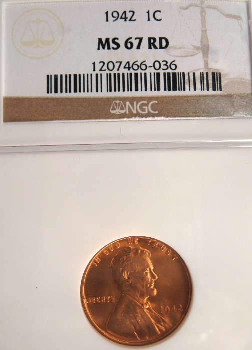 42- Super clean fields (that is dust in front of Abe's nose) and there is nothing wrong with the luster. The only noticeable nicks are on Abe's cheek and the "O". Overall, very clean. A nice 67 by me and NGC.
