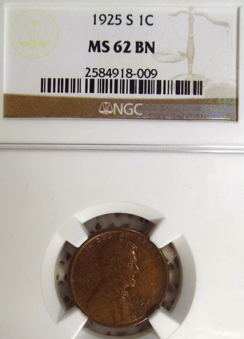 I don't see any wear on this coin from a year well noted for weak strikes. The strike is not that bad. At least every wheat line is still there. Luster is not great, but it has some and there are no distracting marks or nicks. FWIW, the graining is not visible to the naked eye and just visible with my loupe (6X, I think). I would have a tendency to give this a 63 ( strike does not count much until you get to about 65), but NGC only gave it a 62. My guess is they count luster more than I. BTW, my picture did not catch it well, but there is a pretty good ghost of Lincoln on the reverse.