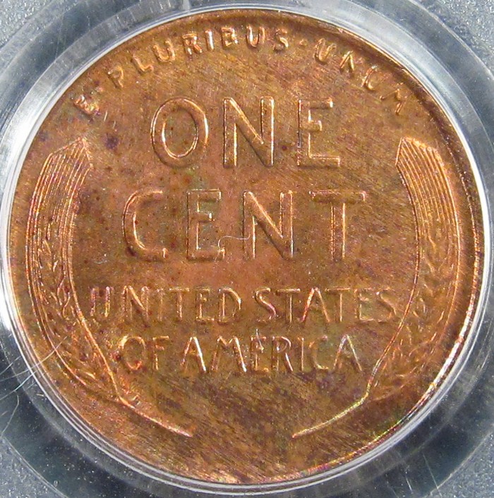 Well, the coin is pretty much nick free and it has decent luster. From there, this coin goes off the wall. I have no idea how they balanced eye appeal with the blotchy coloring. However, they came up with a 63. I don't think they are low, anyway.