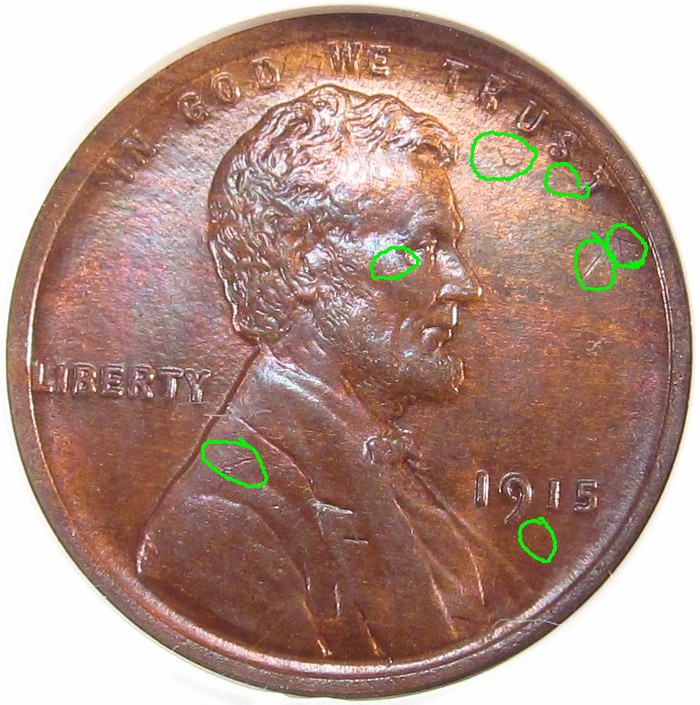 There are 2 nicks there, below the U in TRUST, a couple on the shoulder, cheek, and below AMERICA. I can see 4 (most notably, the one you mention) without the loupe. I am kind of nit-picking on a couple of them, but I have to do something to explain it.