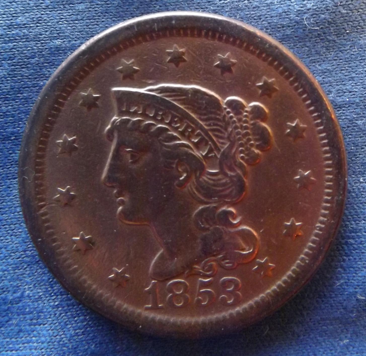 I obtained this 1853 Large Cent and in hand it looks really nice with lot's of copper color. Would anyone care to give a grade on this coin ?