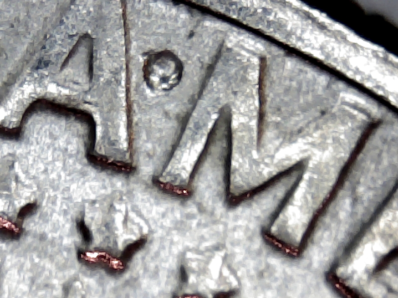 this may be a small struck thru area. I have found a few coins with small round divots like this from new rolls of coins from the mint. I always wondered what was doing this at the mint , now I believe it may be from some of the metal beads from the polishing of the planchets after being annealed . I have two state quarters with lots of divots of different sizes that looks like something got stuck on the dies and got sunken into the planchets during the strike of the coins. both of these coins are identical and the only two found in the new box of quarters.