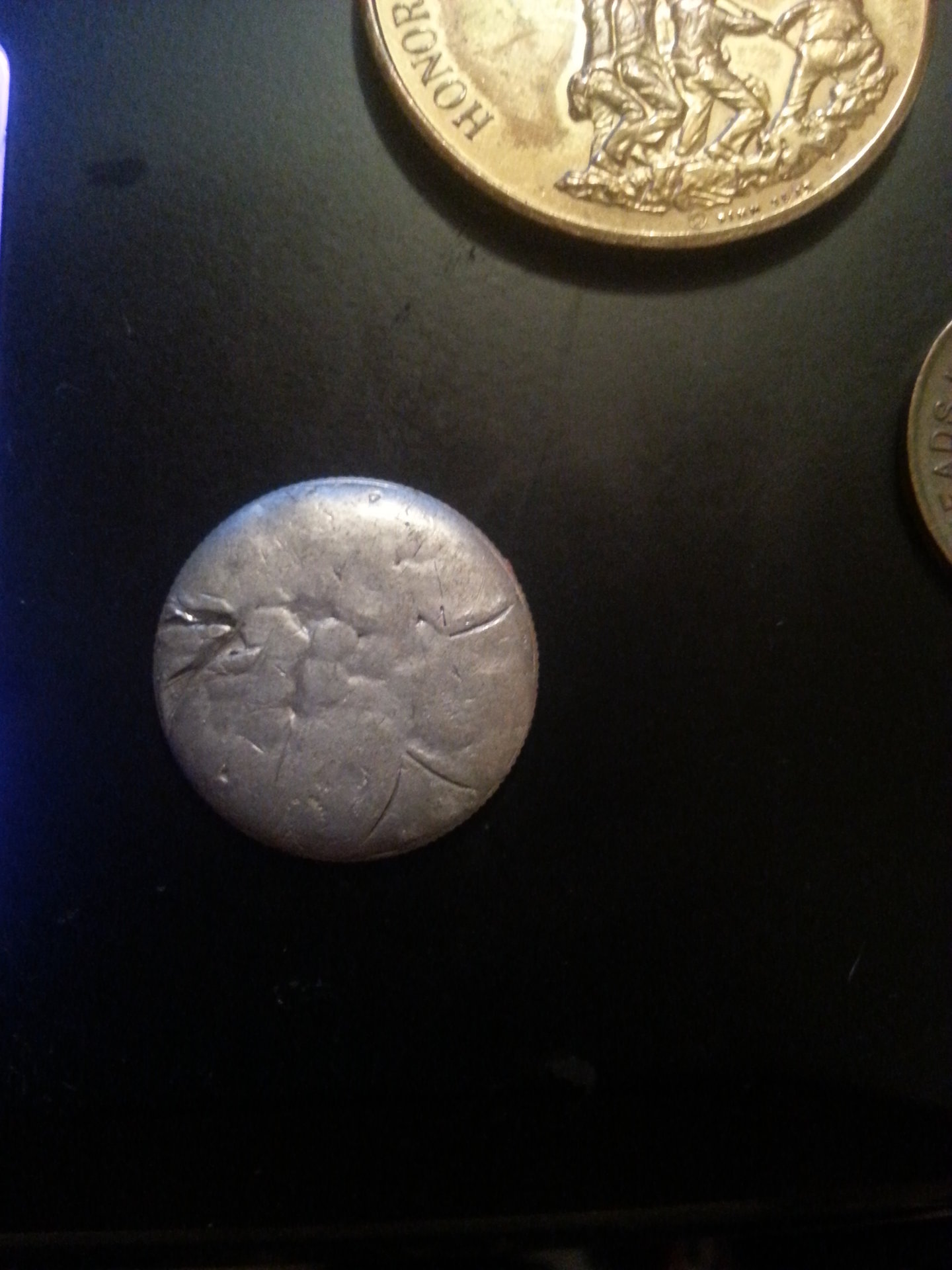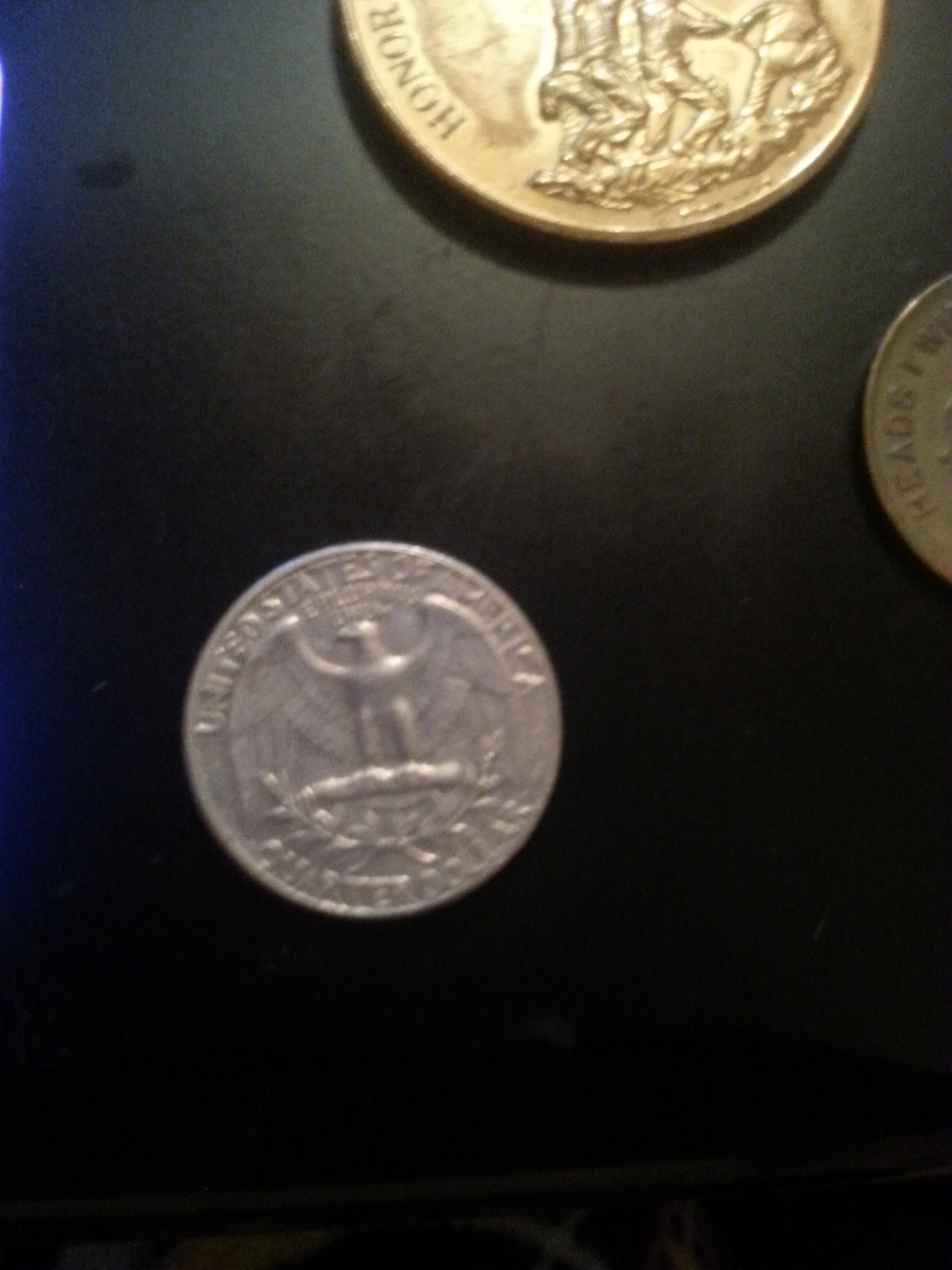 I have this quarter, Ive had it for a long time, and before that it was my grandfathers, he was a very mentally ill hoarder and I found all sorts of weird and rare things.... some coins were in there.... and there was this quarter, It looks as if it was only half printed on the back only, where the head would be is a mound of what seems to be quarter..... Is this a mistake worth cashing in, or was it just some weird thing my Schizophrenic grandfather kept...?