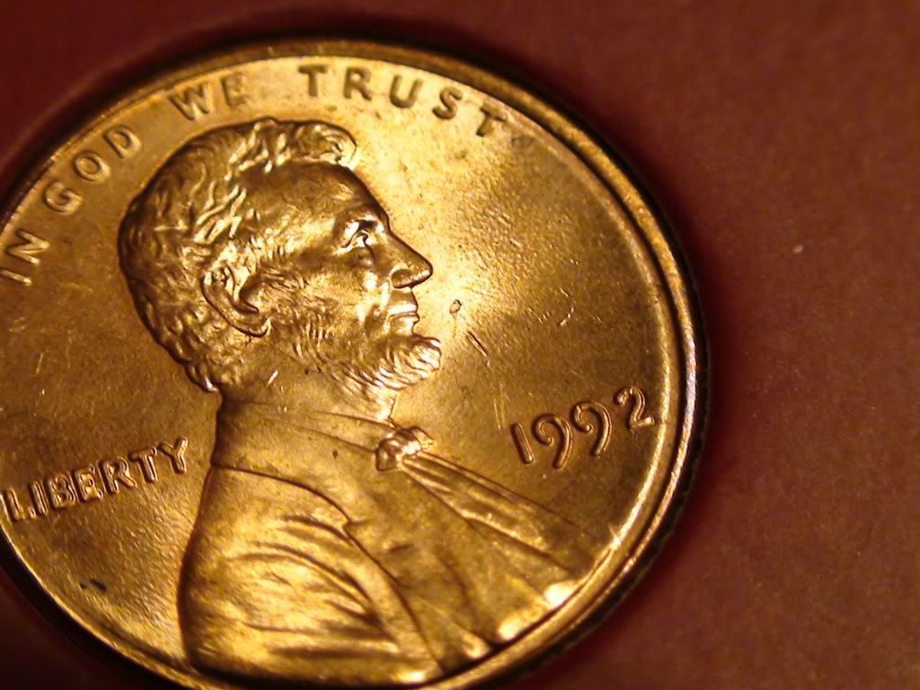 It does have some Double Die characteristic's but that is a bit high for that. I have to agree with the rest of you. I only have one error coin I think could be worth that kind of money. I just recently found that as it is in an uncirculated 1972 mint set. But it actually appears "artistic" in the error. The eye appeal is very high on the error. It sort of speaks to you.. It looks as if the Lincoln Memorial is exploding and the parts are flying all over the place and blasting off the lettering on the reverse. The main reason I think this is worth that much is "I just don't want to sell it"... LOL What do you think? Is Lincoln Blasting his way out of that place? Now I am not real certain of this sites abilities. if you can't enlarge this enough to get a good look let me know how big I can upload I can adjust the main jpg down. This one was shrunk. The "oF" is completely gone, as is the "E" in E PLURIBUS, the PL and IBUS are disintegrating in the blast. The "STATES" and the "A" in America also appears to be disintegrating in the blast. It's cool, Lincoln stands out really great even when looking thru an eye piece because the roof above him is missing "Blown away?" He just glows. Some pillars appear to be double struck. Debris goes all the way out to the rim. Most of this is excess slag on the coin not scratches or gouges. But the Planchet was a poor polish. Especially on the obverse. I decided to call it "End of his Union" as I have reservations as to where our country is going these days... LOL (O.K. Give me a break, I'm old! LOL) What do you think, Just a Virgin Mary image in the piece of toast thing?? LOL
