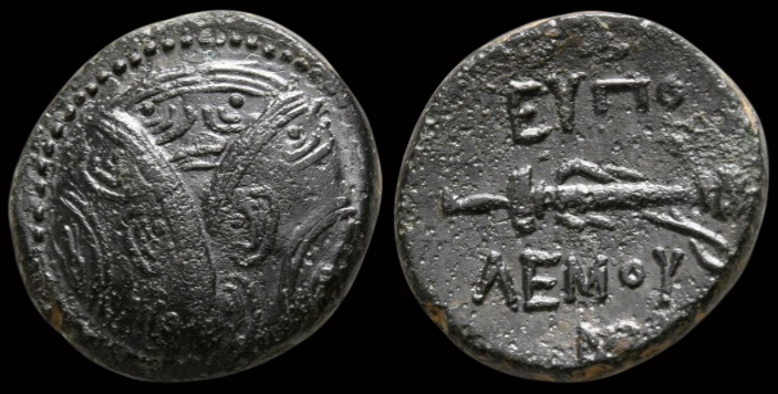 Martin Price said the spear-head/Σ, caduceus/M and (NK) issues are Cypriot, citing a hoard from Amathus and similarity of the letter symbols to gold and silver of Salamis. Price said Edward Newell sought to link the NK monogram with king Nikokreon/Nicocreon and the M with Ptolemy’s brother Menelaus. Little is known of king Nikokreon except that he paid homage to Alexander the Great at Tyre in 331 BC. Nikokreon co-operated with Seleukos in 315 BC but was not mentioned during the siege of Salamis in 306 BC – implying he died before that date. For the Medusa bronzes, Richard Ashton believes the double-axe, Κ, and Μ issues are from Kaunos, the rose issue from Sardes, and the "hat" issue from an uncertain Northern mint. Ashton’s attributions are correlated with the number of specimens in regional Turkish museums. Ashton’s attributes revise the earlier standard work by Martin Price. Price had assigned the double-axe / K and spear-head / K varieties to Miletus, citing similarities to gold and silver of Miletus and the Caria (1986) hoard. Price had put the "hat" / M and rose varieties in his “Miletus or Mylasa” section. The most detailed study of the series is Katerini Liampi’s. She believes there is no relationship between the anonymous issues and those with monograms as episema [=boss iconography]. They depict different shield and helmet types — the only common issue is the labrys and the K on anonymous and Demetrios coins. Liampi believes the bronze issue with thunderbolt boss started in Alexander III’s lifetime because of connections in legends and monograms. The thunderbolt boss issue circulated as the smaller denomination alongside Alexander’s Herakles/bow and club type. Liampi reports that at the city of Demetrias, founded in 293 BC, there were no anonymous pieces so they cannot belong to the interregnum. There was an English summary of Katerini Liampi („Zur Chronologie der sogenannten ‚anonymen’ makedonischen Münzen des späten 4. Jhs. v. Chr.” from Jahrbuch für Numismatik und Geldgeschichte, 1986, p. 41-65) by FORVM web site user Drapsul. I don't know if it is still there. Other things worth reading are Richard Ashton, “Kaunos, not Miletos or Mylasa”, Numismatic Chronicle (2004), p. 33-46 and R. W. Matheisen “The Shield / Helmet Bronze Coinage of Macedonia: A Preliminary Analysis”, in SAN X (1979)