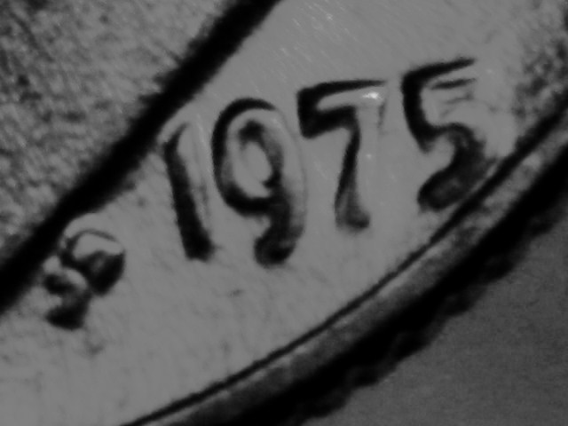 ......... I just had a quick question I actually have a 1975 it looks like double die I don't know much about coins but the coin itself looks aluminum on the back if that makes sense it was clearly not stamped straight