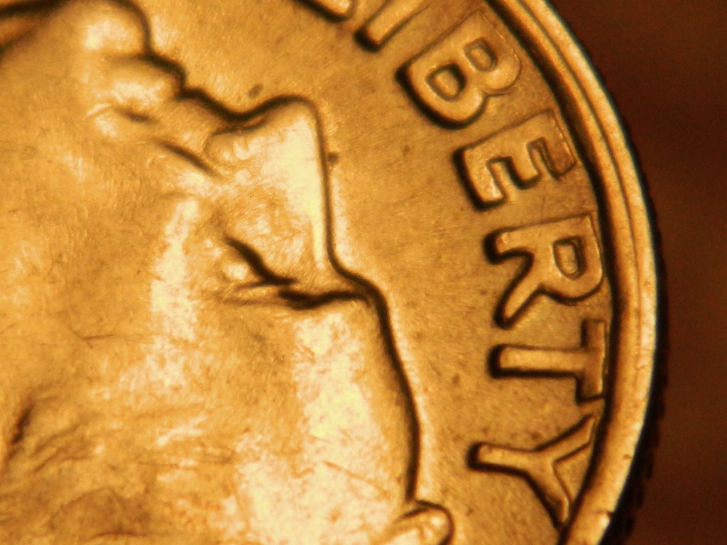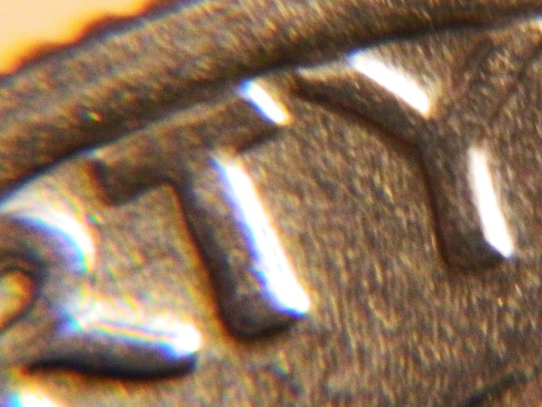 After hours of researching my supposedly non-existent doubled die, die-clashed 1975 Dime, I've decided it's time ask the experts! I'm asking you all to please take a look at LIBERTY, IGWT, and the date for the obverse....for the reverse-can anyone PLEASE explain the odd-shaped lettering? Also, there is a raised area that coinicides with the outline of the portrait (similar to the 74D clash). There are also obvious areas of doubling present on the reverse, such as the most obvious "D" in "DIME". Is there a website that I'm missing somewhere? I've searched The Authoritative Reference on Roosevelt Dimes, Cherrypicker's Guide, and Strike It Rich with Pocket Change, as well as every other variety site and Google, and the only thing that turns up for 1975 is the no-S proof (don't I wish). I'm new to attributing Roosevelt's but this simply doesn't seem to exist. I was originally excited about finding not one-but TWO 1970 No-S proofs, but I got so sidetracked by the odd lettering, doubling, and clash that I forgot to take pics of them and will do that in the morning. I've been hoarding all of my older dimes for quite a long time so I had a pretty big stash to start going through! There are a lot of pics to show all of the areas so I will have to add them in more than two posts. Thanks all-I'd love any info you guys can help me with! Most importantly-what's up with the reverse lettering??