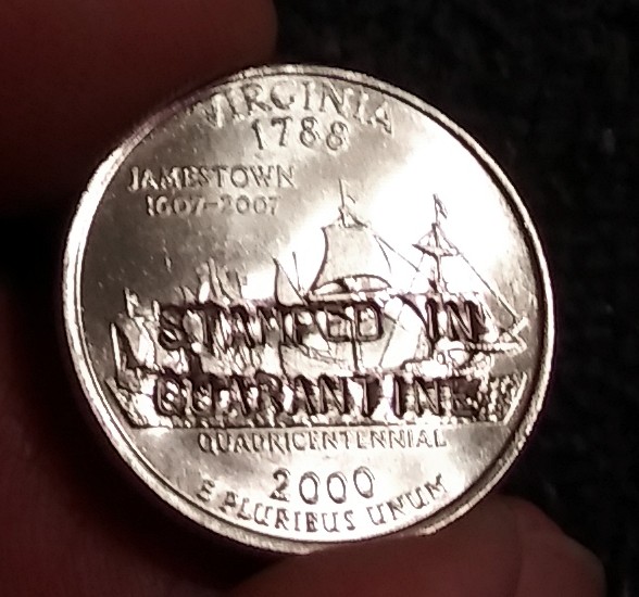 The Quarter Master does seem to have been very active since the beginning of the quarantine, as referenced in one of the counterstamps. (I got one of those, along with several of the other ones mentioned here.)