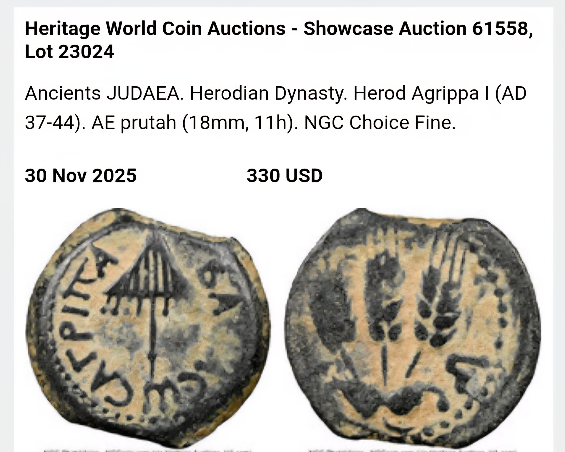 I have these two prutahs that have been floating around in my collection for a while now because I have not been able to identify them. I thought they might both be Herod Agrippa, but they don't really match my other ones. The reverses of both coins are pretty rough. Do any of you know? Thank you!