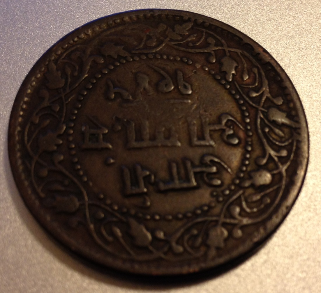 Would like a bit of assistance in identifying this coin. Copper, about the size of a US Half Dollar, smooth edge. I can attempt better pictures if necessary, and I have the Krause books, just need to be pointed in the right direction (or help with dates, as well...) Thanks everyone!