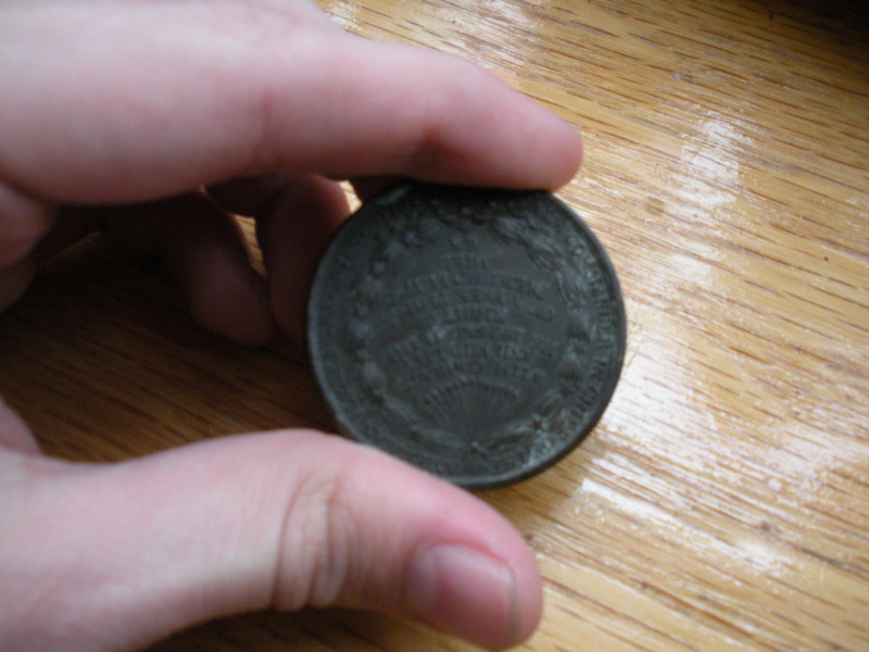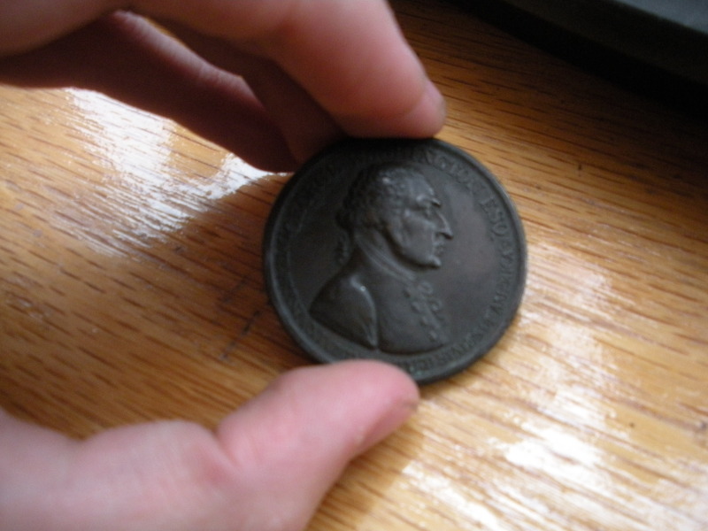 Sure the text goes: With Courage & Fidelity He defended rights of our free people Died December 14 1799 Aged 68 On the perimeter it reads: made commander in chief of the American Forces The 15 June, 1744 I also noticed the word 'Westwood' on his sleeve. No idea what that means.