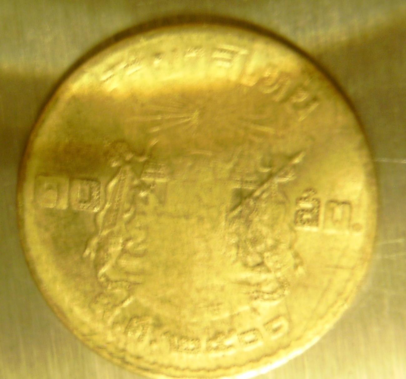 [h=1]Thailand 10 satang 1957 (year 2500 - bronze)[/h] I found it online thanks for the Thailand Clue.