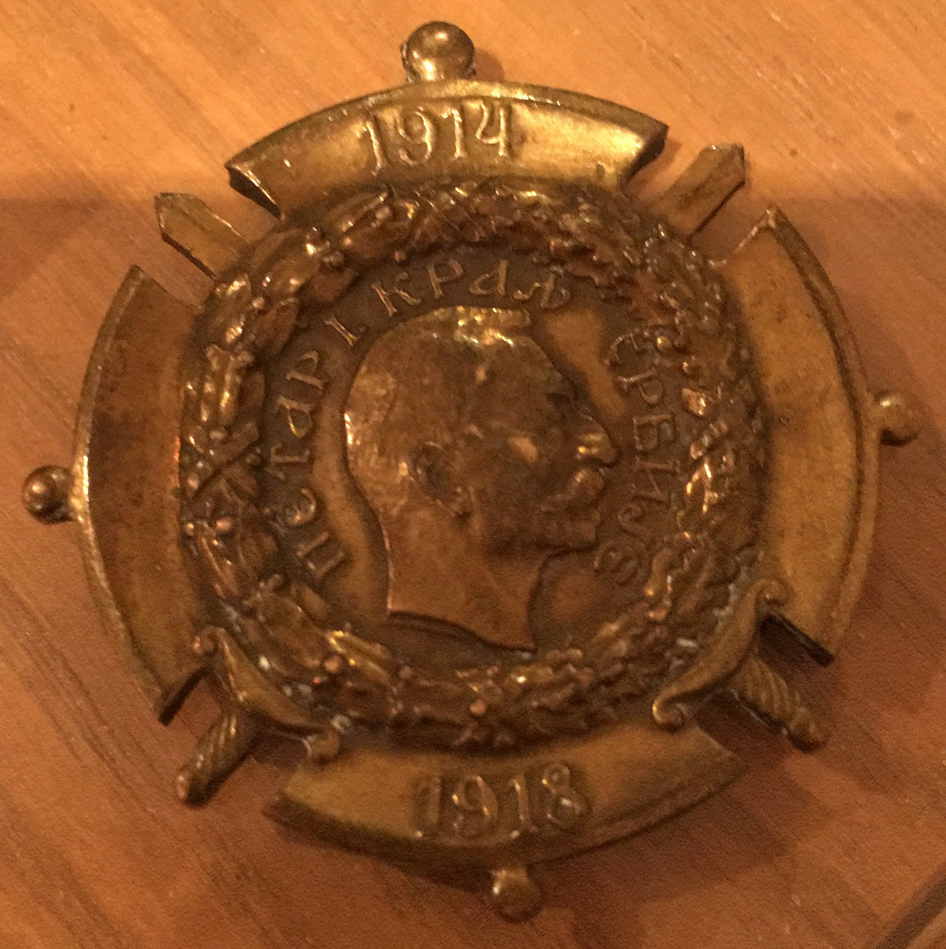 Not Russian but Serbian. The caption: "Petar I - king of Serbia". Serbian is similar to Russian. I understand a little in Serbian.