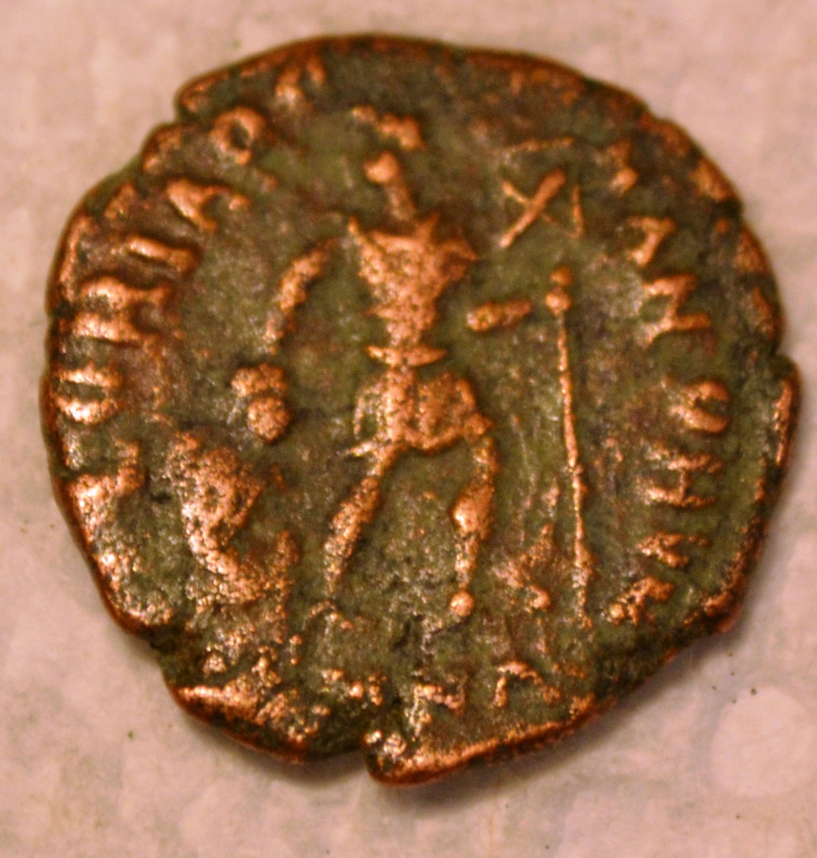 OK here are some of them photographed like you said. I believe this one to be Constantinople city commemorative 330 AD