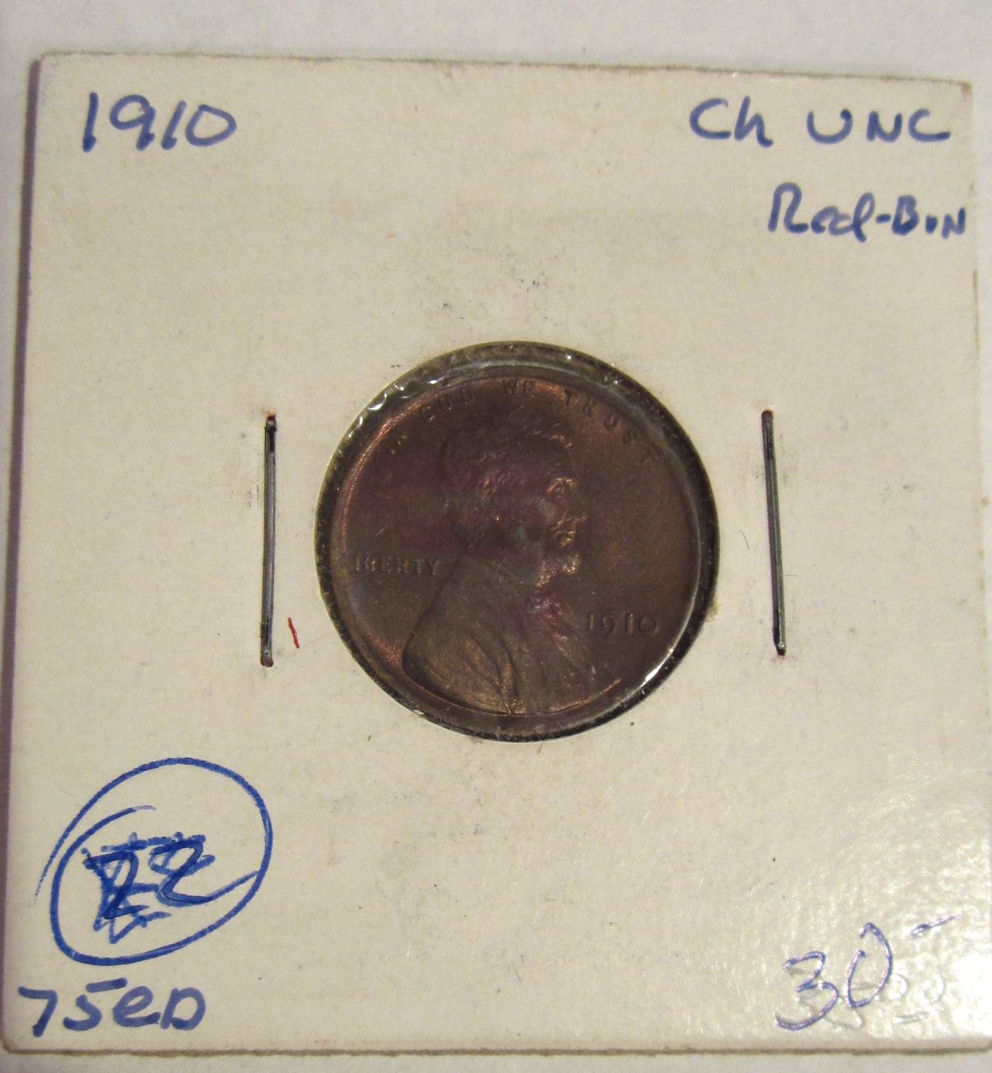 Welcome to Coin Talk, Nicole. Allow me to apologize in advance for any curmudgeons who might stop in; we have a couple. Their hearts are right but their keyboards ain't so hot. Allow me to qualify what I'm about to post with the caveat that your images aren't flawless, and it's never smart to form firm opinions from one single set of a given coin. Coin photography can be deceptive even if that's not the photographer's intent, so there's a certain amount of "from these images I see...." in any evaluation. And it's preferable to image coins outside their containers, although in this case you're right in keeping them in the flips until you know more about them. I'll start with the 1910 and go in order. From these pics: 1910: I really like it. The codes on the top right of the 2x2 mean "Choice Uncirculated, Red-Brown" which is a general indicator of grade and color. Lincoln Cents start out bright copper colored, and numismatists refer to that as "Red" when describing color. That's a more original and therefore more desirable state, and Red Lincolns are more valuable than darker ones. As they age, they can darken to what's called "Brown," and Red-Brown (RB) is the state between them. I love what I see for color although there may be those who distrust its' originality. I'm thinking the Choice Uncirculated term might be appropriate here. Nice coin, and if it's truly "Choice Uncirculated" I'd consider going over $30 for it for my own collection. 1943: Typical Steel wartime Cent with what looks like corrosion on the obverse. These are common, even in very high grade, so although yours looks rather nice technically, if that's actual corrosion it's probably not worth saving although you don't want to throw it away. 1909's: Agreed with Dan that these are the "best" of the bunch from a preservation standpoint. ANA is American Numismatic Association, and the "ANA 65/65" means the writer felt the coin met ANA standards (they're the folks who publish the standards which collectors theoretically grade from) for MS65 on both obverse and reverse. Both 1909's are nice value-added Reds from the looks of things, and although not lottery wins they could be worth anything from $25+ on up depending on grade. Nice liquid coins, and I'd happily own them. The Morgans are common issues, the San Francisco coin being in somewhat better shape but neither offer a ton of value above "minimal" for common Morgans. Morgan Dollars are more plentiful than a beginning collector might think. 1888: A common Indian Head Cent, not worth a ton. Have a very_close_look at the bottom left of the second 8 in the date - there's a very popular variety with the date punched over an 1887, and on it you can see the remains of the bottom of the 7 at that spot on the 8. 2 Cent: This one could be worth a few bucks, depending on condition. It's the last year of large-scale production of that issue and they made fewer than a million, enough in the real world to give it value relative to scarcity. Generally, from what I can see the "grades" marked on these aren't too far off reality - the writer seems to know what he's doing - so if we assume the 2C is actually "Fine Plus" it's probably the most valuable coin of the bunch. There's a lot to stimulate an interest in numismatics here.