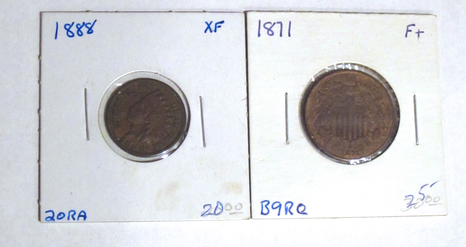 Hello all, I Inherited some coin from my Grandfather as I’m not a coin collector any and all info would be very helpful, rarity, value, even opinions on condition would be helpful! I have two Morgan Silver dollars from 1879 one is mint marked S the other doesn’t seem to have a mint mark. I also have two 1909 wheat penny one VBD one non, a very red wheat penny from 1910, an 1888 indian head one cent, and a 1871 2 cent Coin. In addition I also have a Silver 1948 penny in a blue leatherette holder. Ps. I’m new to message boards so if I make a mistake anywhere please tell me and I will correct it and please forgive the error. Thanks!!