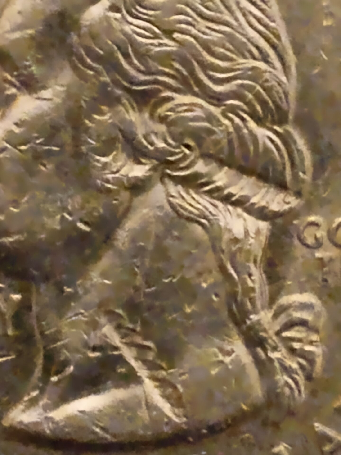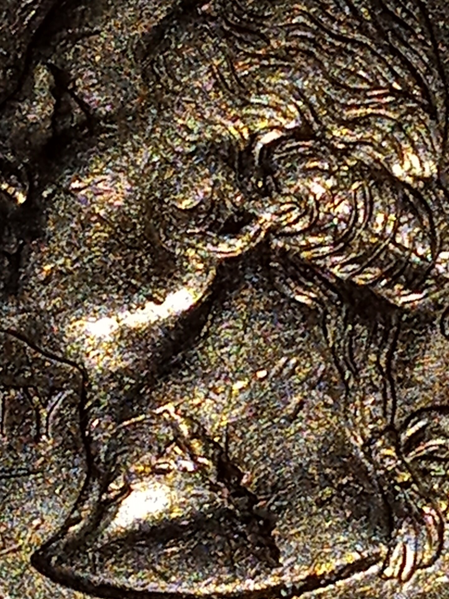 I'm seeing a coin that's been pounded on -- those gouges are damage, not something that happened at the mint. What are you seeing?