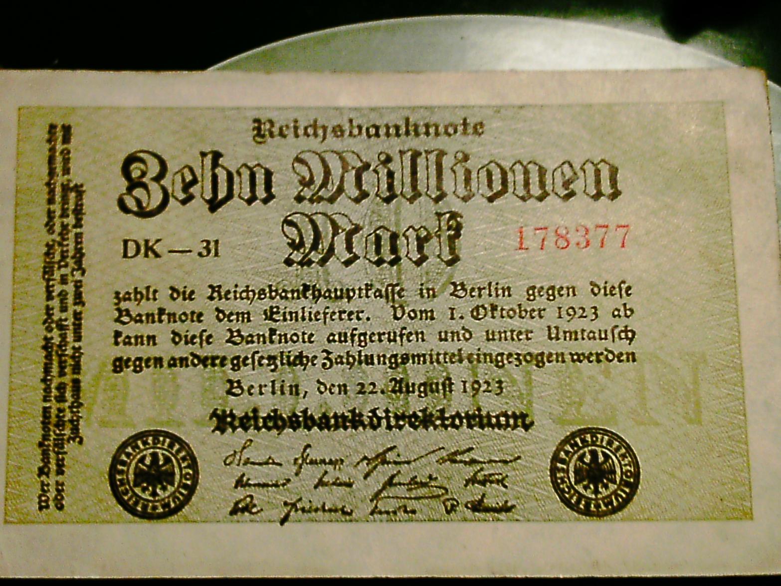 Looks like a 10 million mark hyperinflationary note from post-wwI Germany. Hope someone else chimes in with more detailed info!