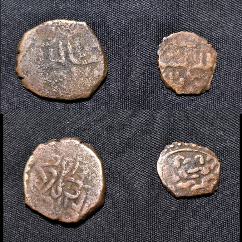 The first coin is Roman, but that is nearly all I can say. It's much too worn. I can make out the letters "LIC" on the reverse and perhaps and AVG on the obverse. Someone more knowledgeable than me might be able to put the reverse with a specific emperor. The other image is of coins out of my area so I can offer nothing to help you.