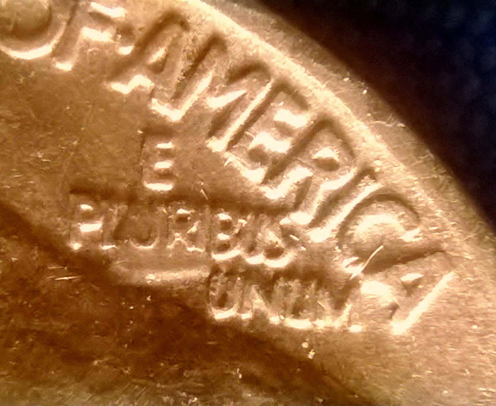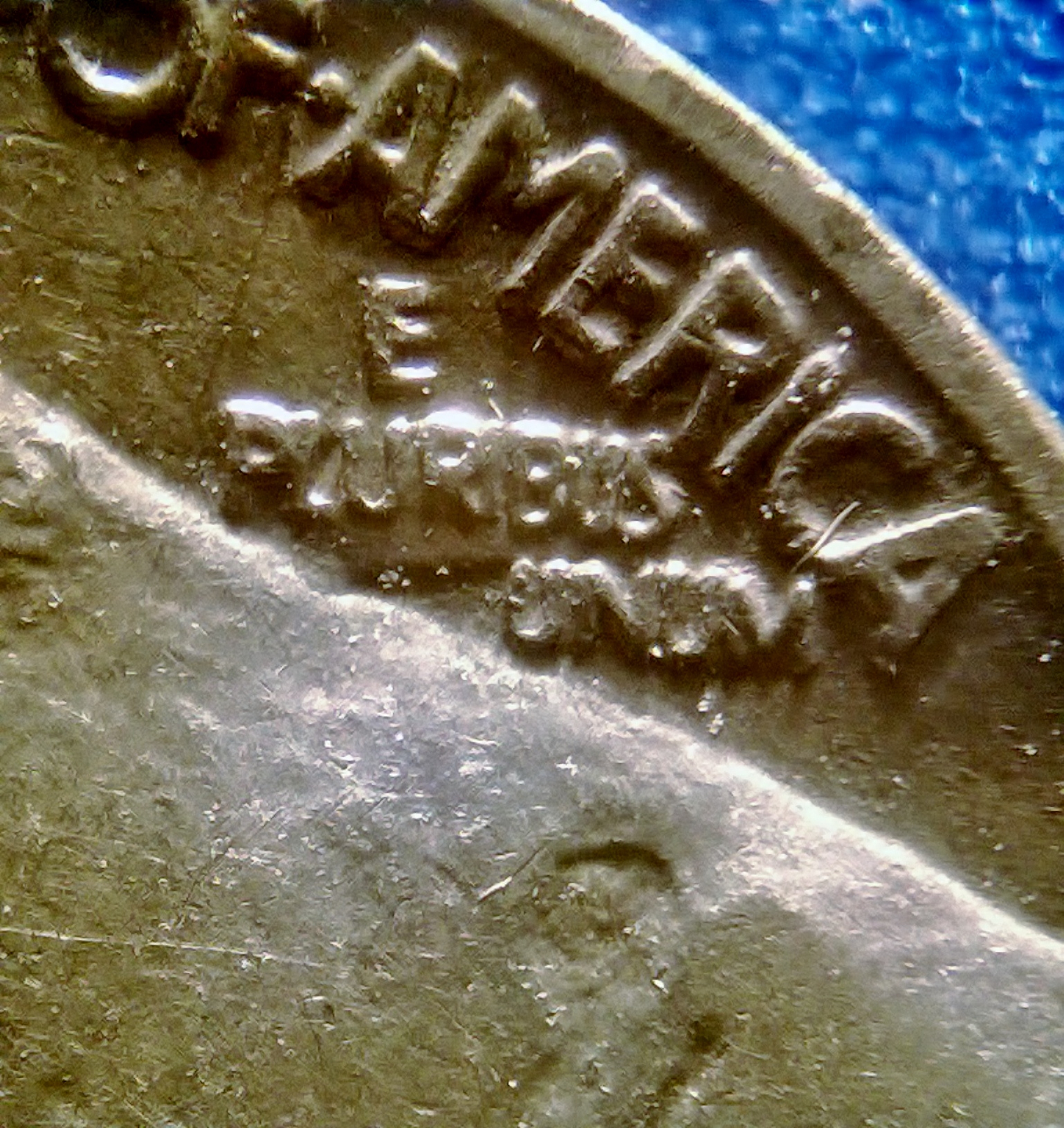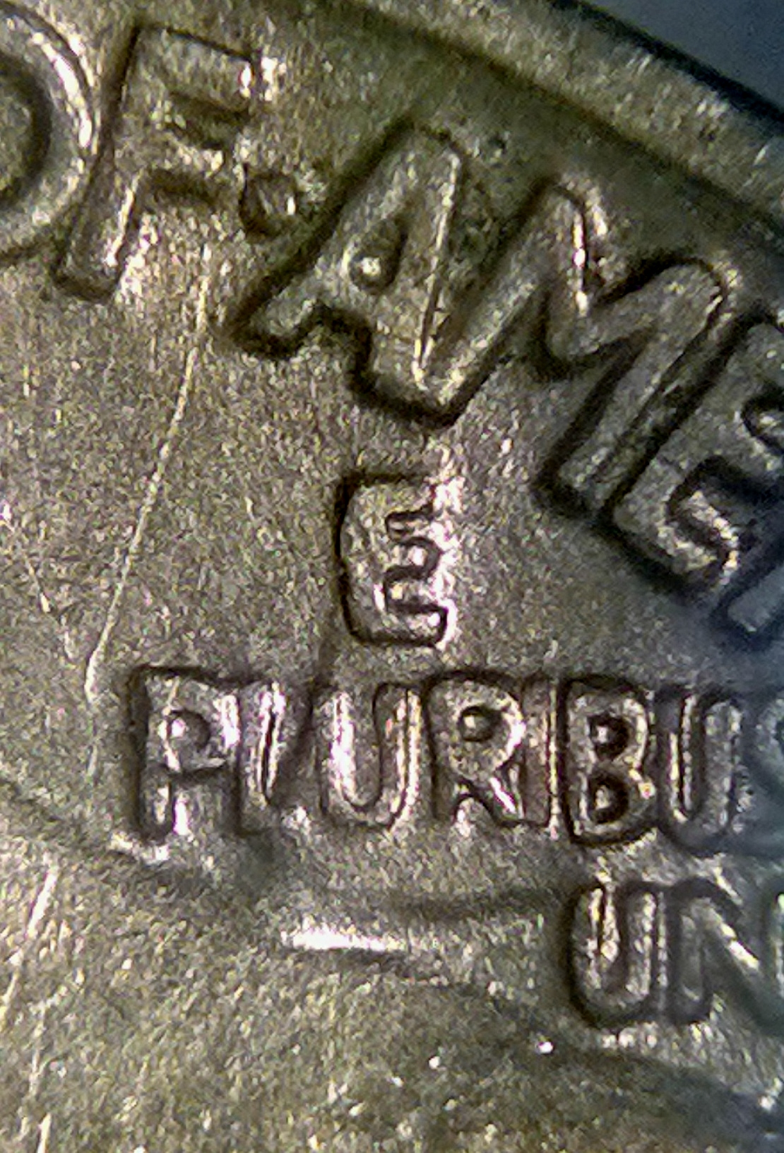 Wondering if someone could help me identify this anomaly? -- Attribute it, or dismiss it. E south to P, then west to east under PLURIBUS. It is raised. I have some ideas, but looking for some other insight. Hopefully from a Buffalo and/or error specialist. Thanks.