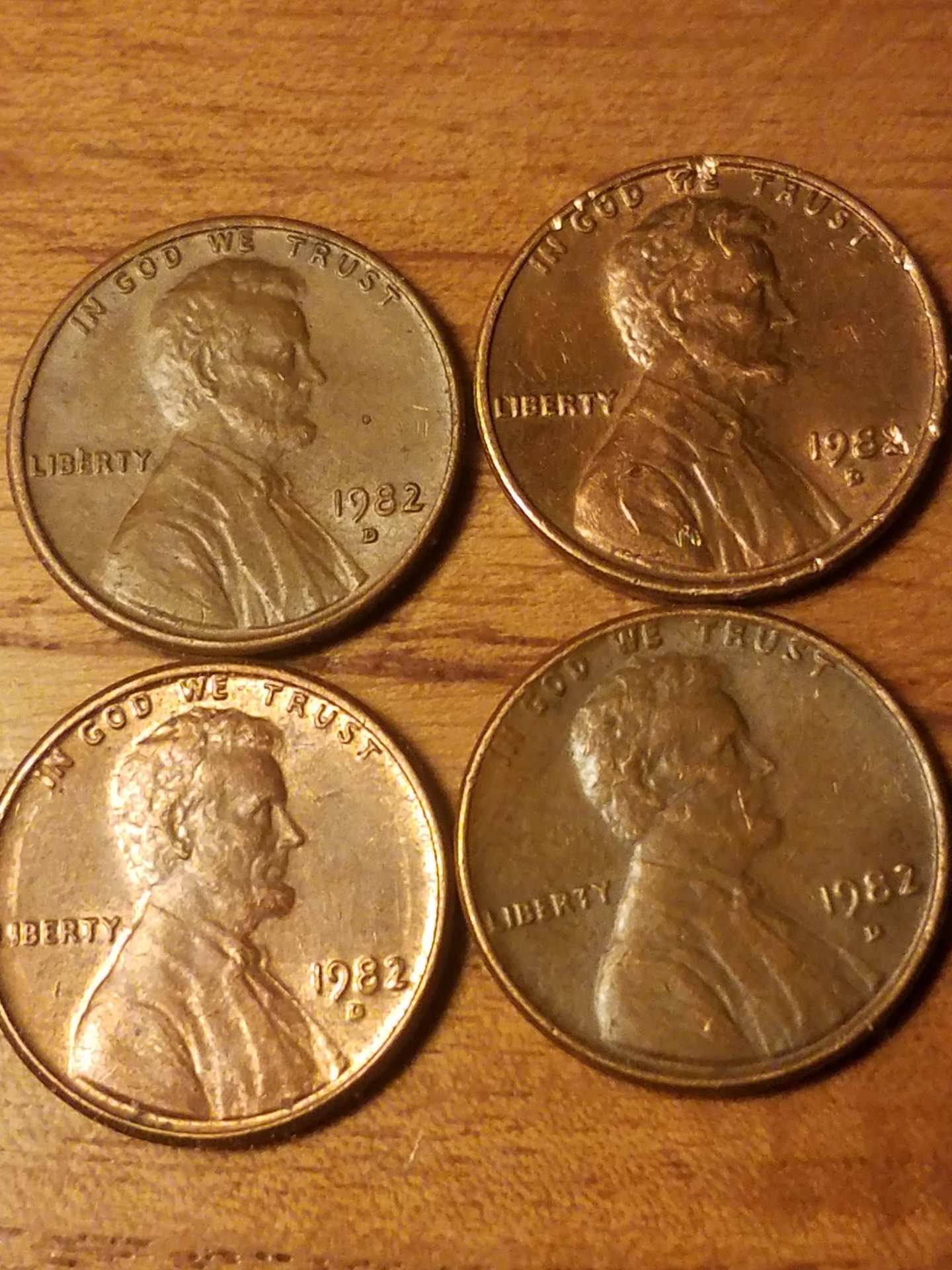 I have a Couple 82 D pennies that I'm having Trouble Determining Large or Small Date. On One The 2 is Damaged . The other is possible doubling? The 8 and 2 are Thick and uneven. It is the bottom left coin in picture of 4.