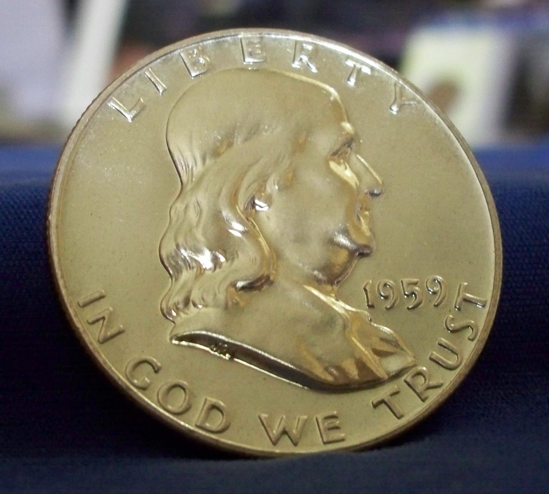 It looks like a typical weak strike for the 1959 series. 1959 was the last year that the original master die would be used, so many Franklins were struck weakly. Cameos for this series are very rare because of the techniques used up until the 70's to create them. I've been reading up on Franklins. Sorry, if you knew all of this. It helps me to learn by writing it out. I love this one. I have a '59 proof as well. No cameo though. It's interesting how much easier it is to find cameos after 1959 though. Not that it's easy, but easier.