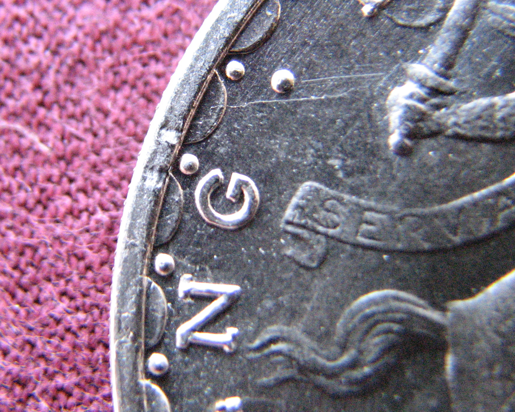 Hi Guys, I just received this coin the other day and noticed something that I didn't see when I purchased it. There are some small indention's on the reverse at 10:00 o'clock. These marks appear to be PMD, but I'm not sure. There are no other marks around these indention's or anywhere else on the coin. Do you think it is PMD, and if so,how do you think in will affect the grade? Thanks