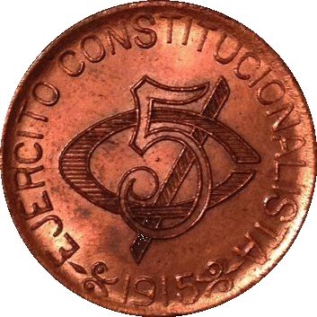 Hello, Sorry for reviving an 11 day old thread, but I have also been looking for the variety of a 1915 5 Centavos of my own. 1915 Mexico-Revolutionary Chihuahua 5 Centavos- Any help would be greatly appreciated. Thanks!